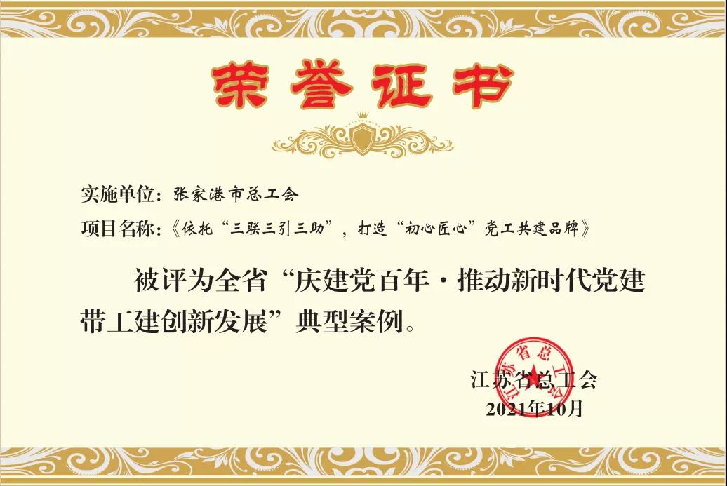 日前,“慶建黨百年·推動新時(shí)代黨建帶工建創(chuàng)新發(fā)展”優(yōu)秀成果發(fā)布,我市總工會“依托‘三聯(lián)三引三助’打造‘初心匠心’黨工共建品牌”被評為江蘇省典型案例。